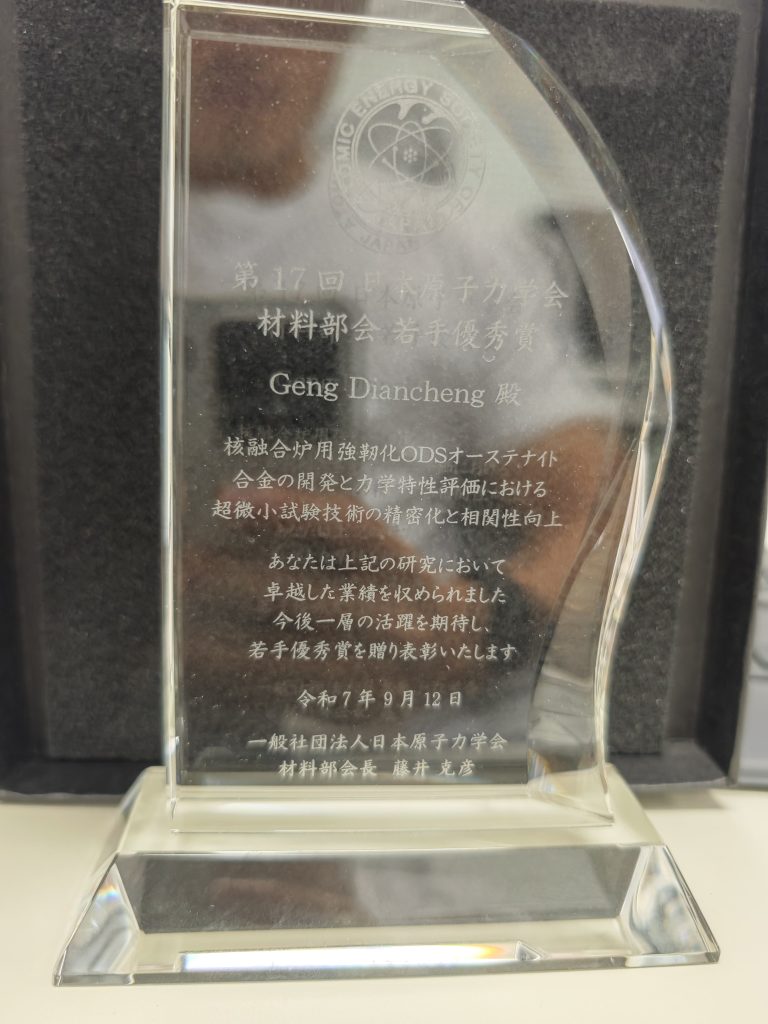 賞名 第17回日本原子力学会 材料部会 若手優秀賞