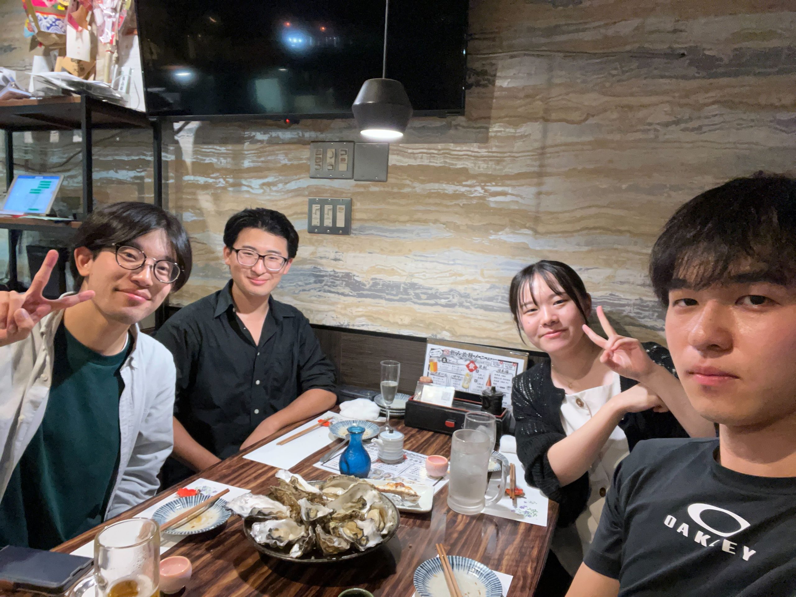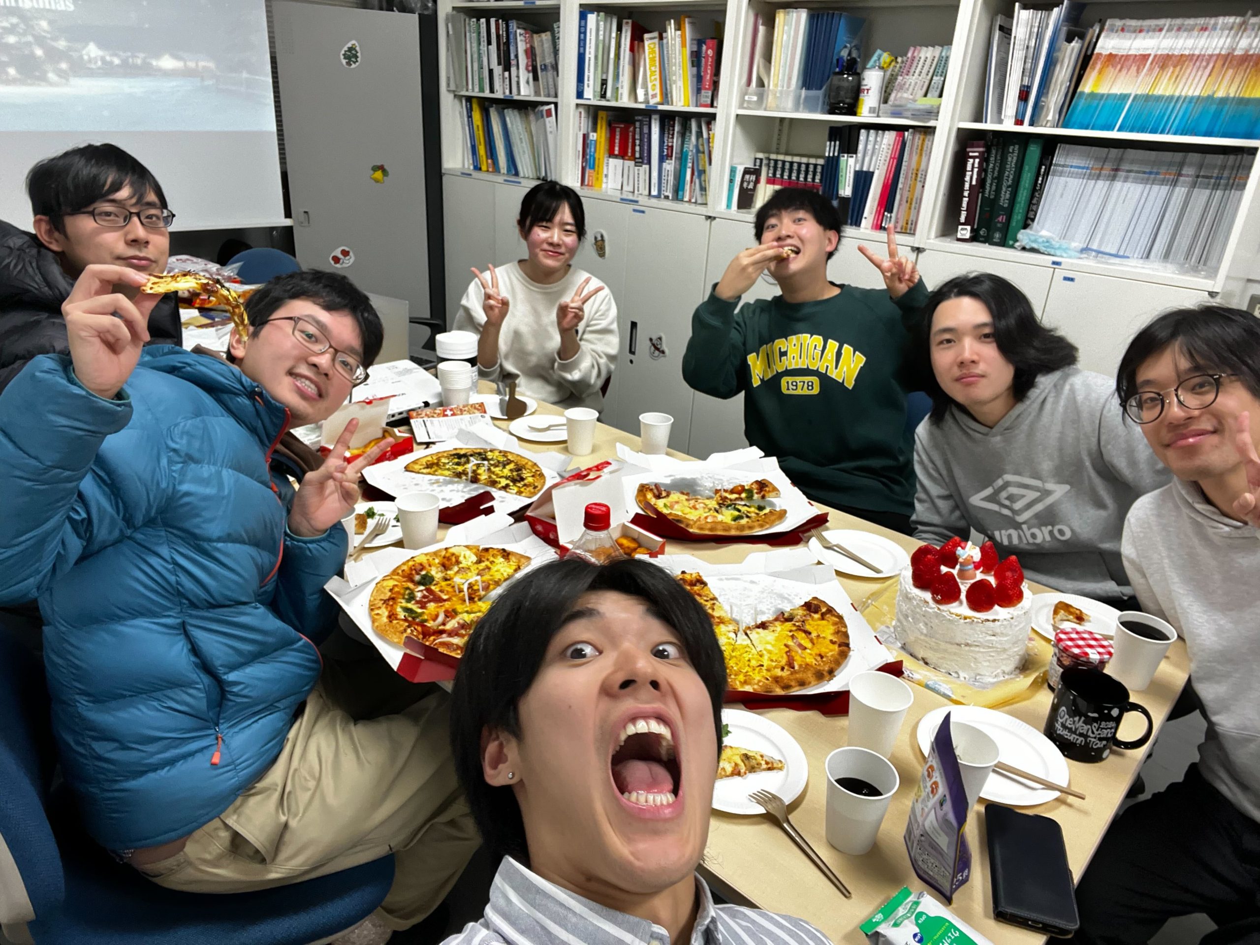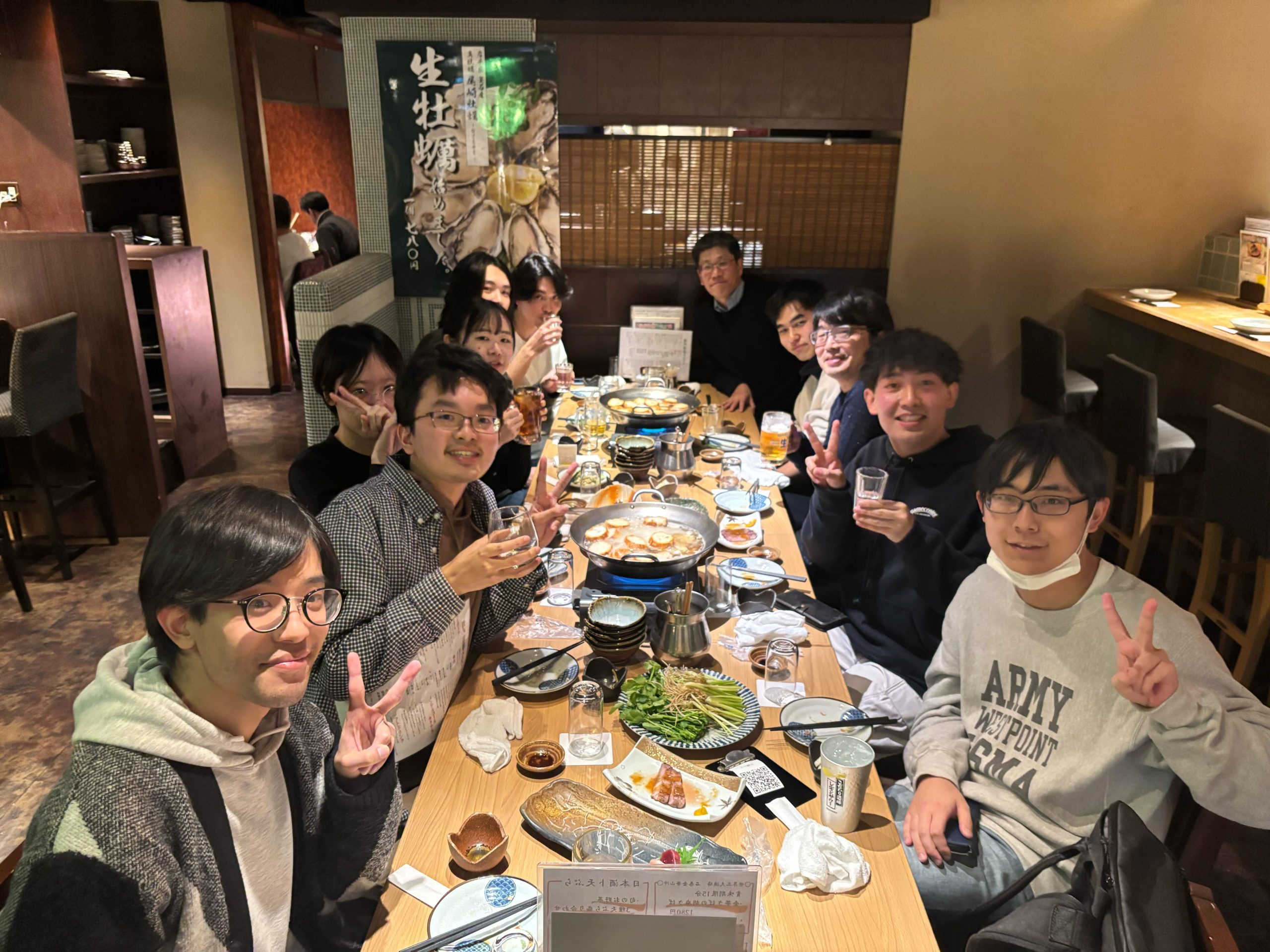 2024年2月 青山拓也 助教、北野友裕さん、佐藤楓貴さん、種岡輝さんの送別会を開催しました。今後のご活躍をお祈りします。