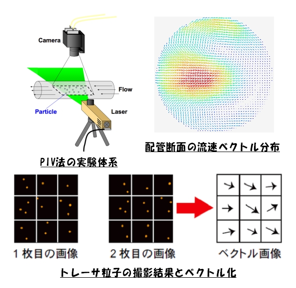 当研究室では、配管内流動構造の可視化法として粒子画像流速測定法