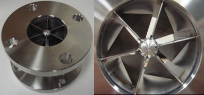 長さ80mmの配管の中に羽根が6枚ある。この羽根は30度の角度で配管に溶接されています。