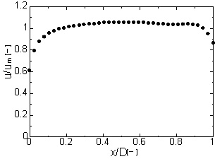 エルボ内の流動構造が発達乱流の場合と比べてどのように変化するのかを評価することを目的とし、可視化実験を行っています。