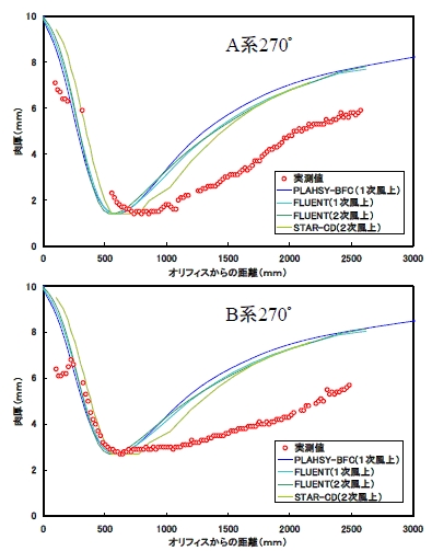 | 数値計算による乱流エネルギー分布と減肉の実測値の傾向の比較