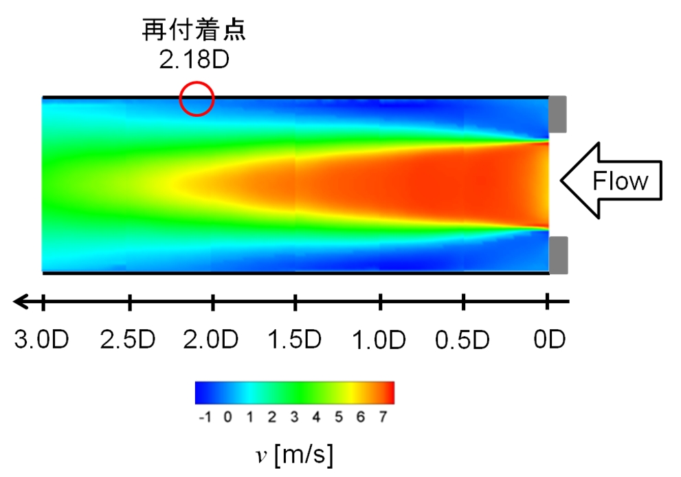 そこで再付着点付近での速度変動の周波数に着目し、