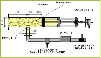 一般的にマイクロ波発振器は矩形導波管に接続されています。実際の検査対象となるのは円形管なので、矩形導波管を用いる場合にはマイクロ波のモードを矩形モードから円形モードへ変換する必要があります。