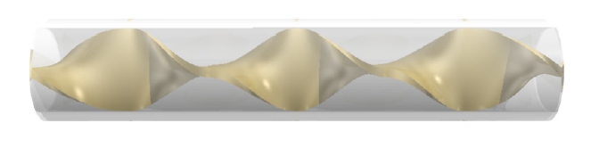 スワール管は円管の中にねじりテープを入れたもので、管の中で冷媒が旋回流を起こすことに