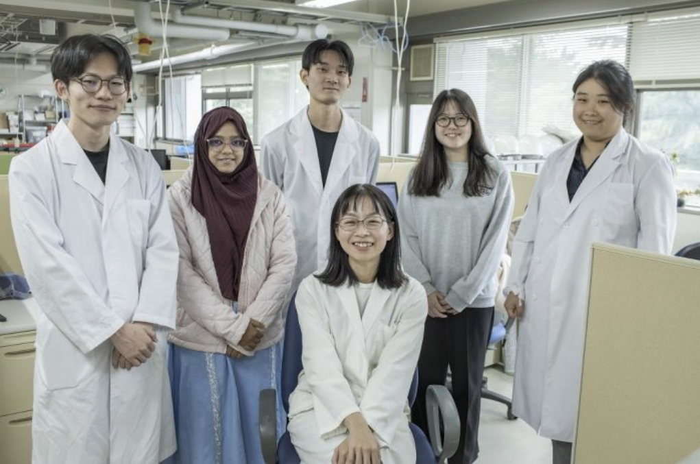 (Photo: Left – Right) Ikenoue (B4-M1), Choity (M1), Tokuhisa (B4-M1), Matsumiya (M2), Han-sensei (Assistant Professor of Mei-Lab), and at the center Assoc. Prof. Mei (Photo from ViEWi Article)