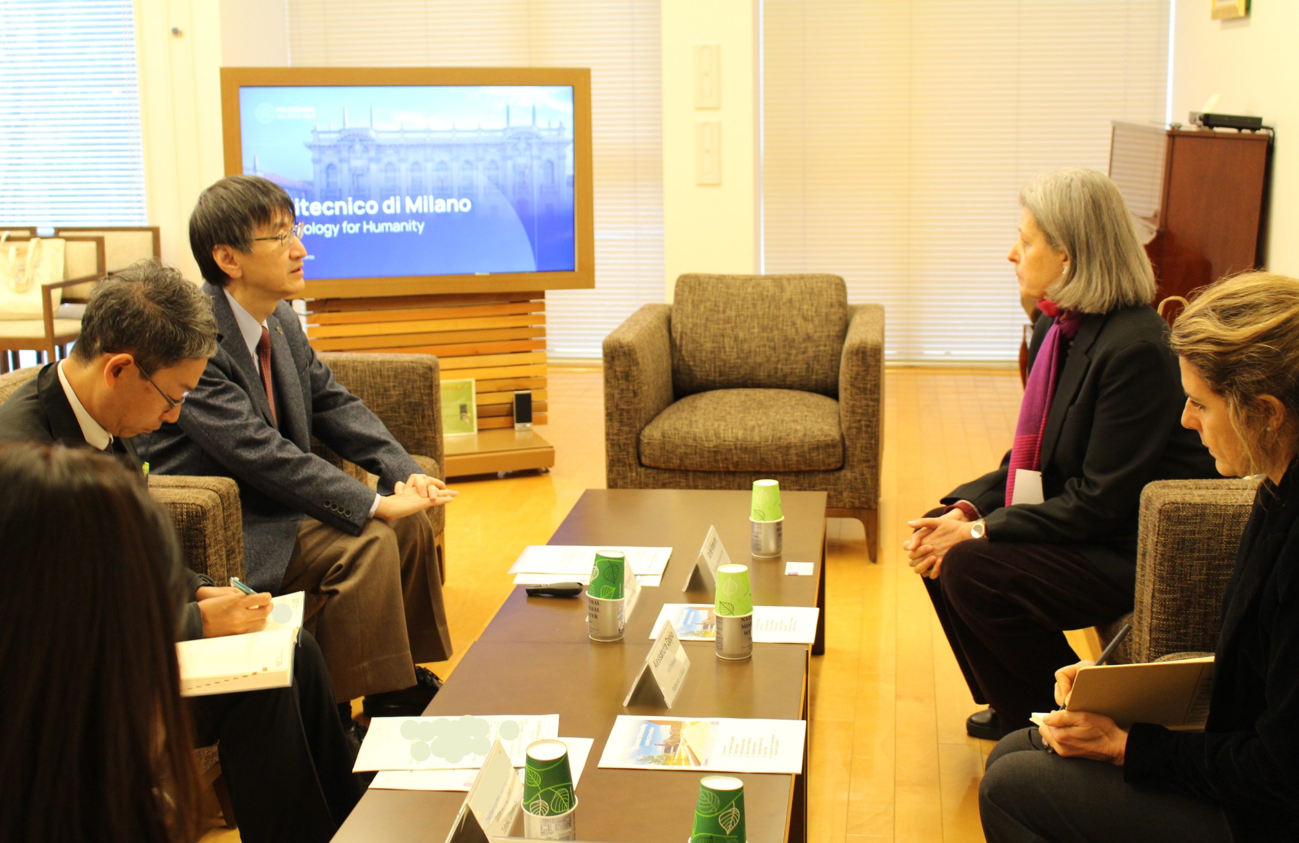 会談では、気候変動をはじめとした地球規模の課題に対し、社会に貢献する研究成果をともに目指すこと、また、両大学が強みをもつ共通分野において共同研究を促進することについて、活発な意見交換がなされました。佐野教授からは、工学分野における両大学間の研究に関し、ミラノ工科大学との連携に期待が寄せられました。