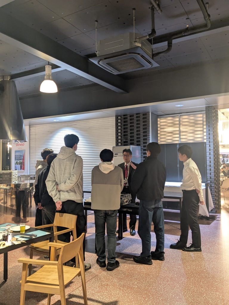 2025年12月4日にDENSO DOCKで株式会社デンソー自動車業界説明会が開催されました。小林課長はじめ本学OBが参加し、学部生、大学院生に自動車業界の過去、現在、そして、共創研がこれから創り出す未来について紹介しました。その後、OBとの座談会を行いました。あっという間の2時間でした。