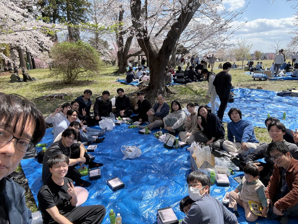 金研花見2026 4月11日に三神峯公園にて恒例の金研花見の会が開催されました。 新M1の新歓に加えて、4月より客員教授に着任したソウル大学の小田教授一家の歓迎も兼ねて、賑やかに散りゆく桜を豪華なお弁当とともに楽しみました。