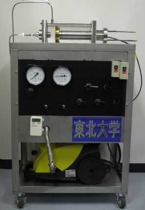 気中水噴流(いわゆるウォータージェット)と水中水噴流(キャビテーション噴流)の相違を可視化等によりデモンストレーションする装置。