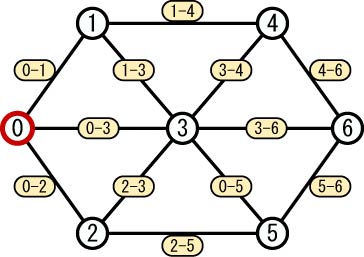 路に相当します。(0-1)は、ノード0とノード1を結ぶエッジです。