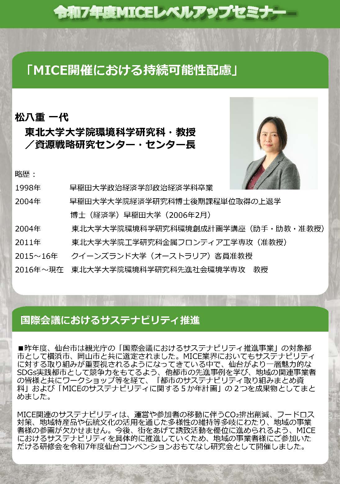 2026.02.04Professor Matsubae delivered a lecture at the “MICE Level-Up Seminar.”