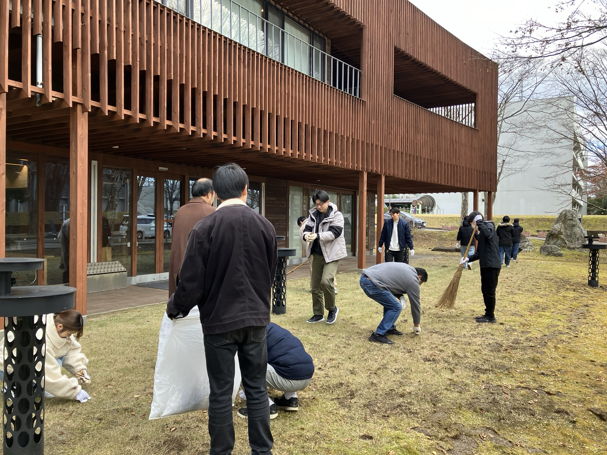 環境科学研究科周辺の落ち葉拾いを行いました。