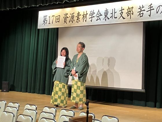 第17回 資源素材学会東北支部若手の会にてM2佐藤さん、M1浅見さん、豊田さん、B4坂本さん、村山さんが参加し、発表を行いました。豊田さん、坂本さんは優秀ポスター賞を受賞しました。 豊田さん、坂本さん、おめでとう!!
