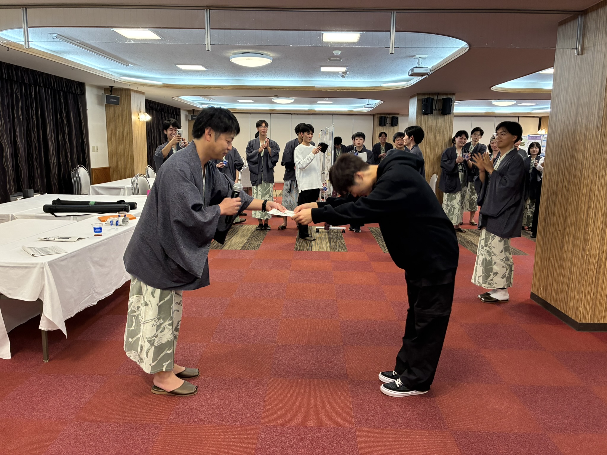 田中(洸)さん、おめでとう!背景のビラも秀逸。