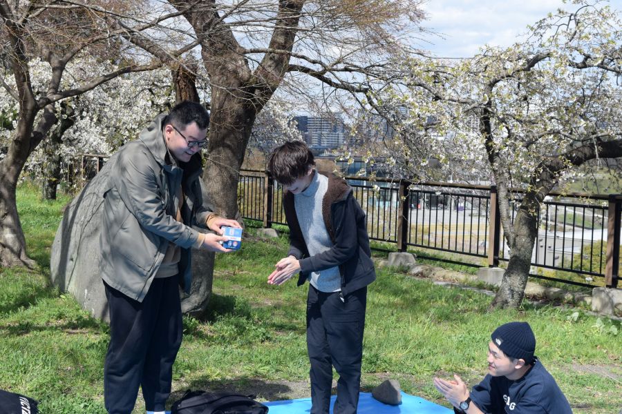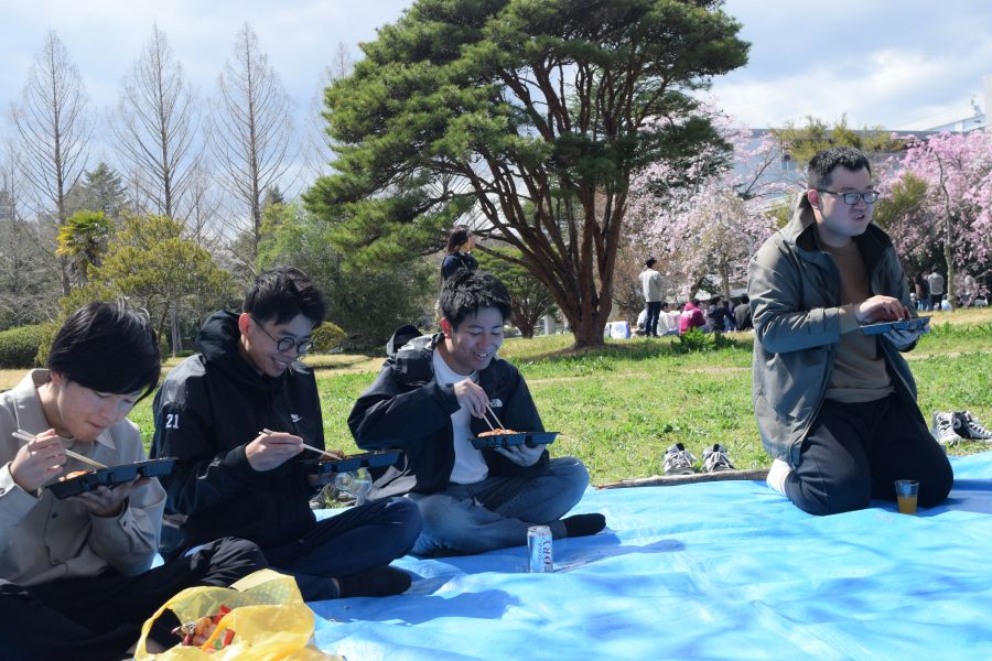 今年の花見は天候に恵まれ,気持ちのいい外で行うことができました.