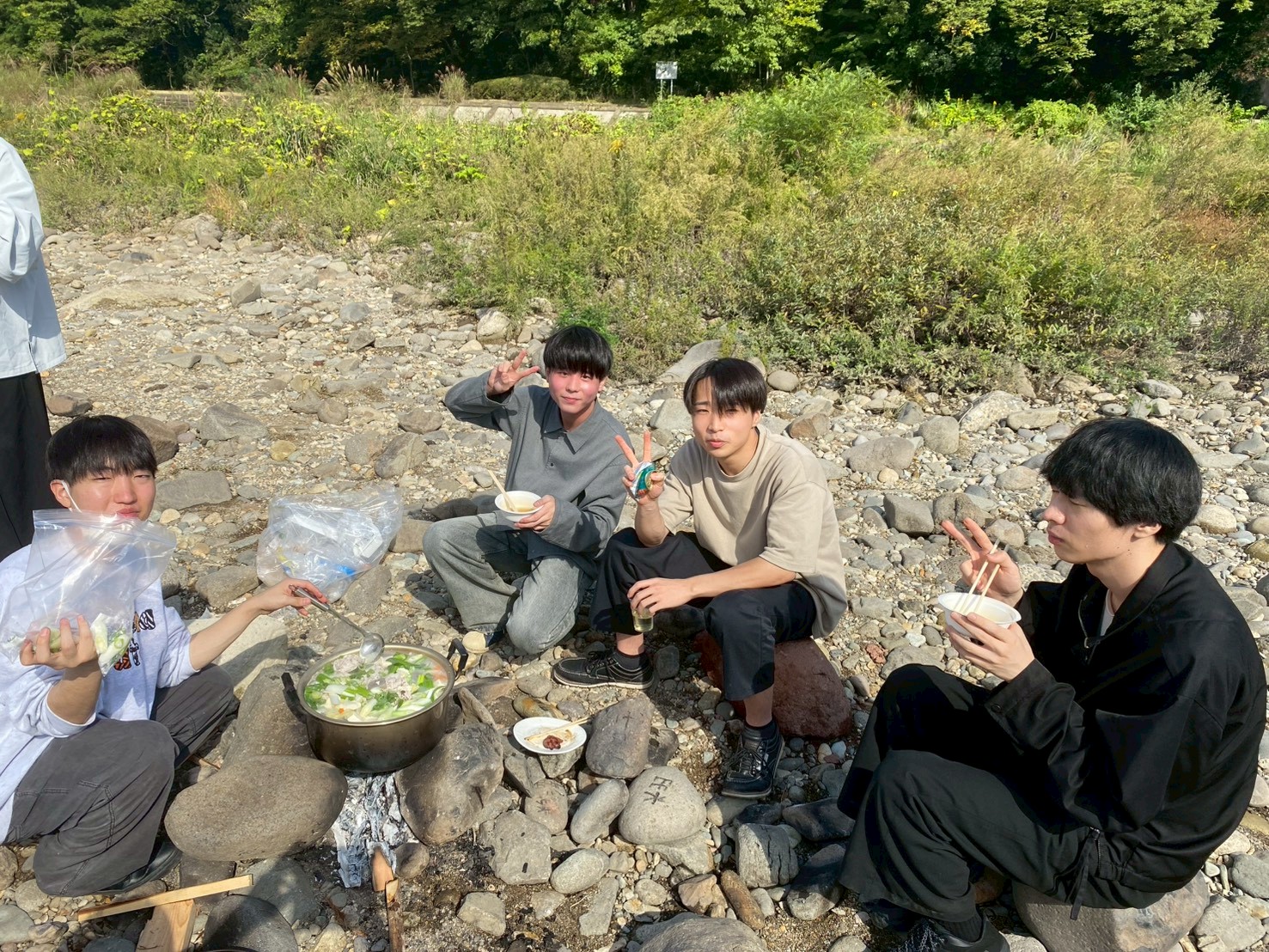 2025年10月17日に牛越橋の下で芋煮会を行いました。前日の悪天候の影響で開催が危ぶまれましたが、当日は絶好の日 和で無事決行出来ました。有識者や先鋭たちの手によって昨年度よりグレードアップした芋煮をいただきながら、銘々 学年の垣根を越えての交流が出来ました。新たに三年生を迎えて初めての研究室行事でしたが、親睦を深めると同時に 研究室として新たなスタートを切ることができました。