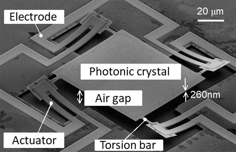 「フォトニック結晶」は光波長程度の微細周期構造で、光を遮断・閉じ込める機能を持つ。マイクロアクチュエータでフォトニック結晶を高精度に位置制御することで、ナノ光共振器の光結合効率を制御し、光遮断特性を制御する反射率可変フィルタを開発した。